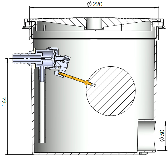• Connexion latérale Ø50mm à coller.