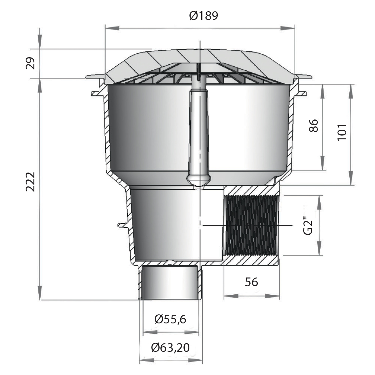 BONDE DE FOND BÉTON 2'' TARAUDÉE AVEC GRILLE ANTI-VORTEX