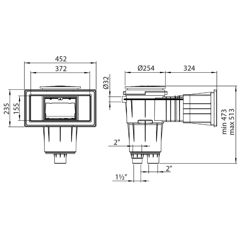 SKIMMER BÉTON LUXE 17L + 2 SORTIES 2" P/16