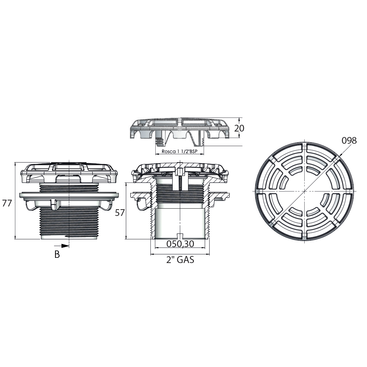 BUSE D'ASPIRATION MURALE FILETÉE 2"