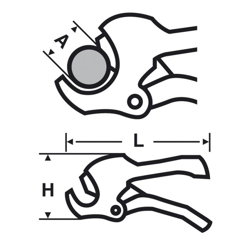 • De plus les 2 longs bras permettent une coupe sans effort même sur du tube PVC rigide Ø63mm PN-16 16 bars.