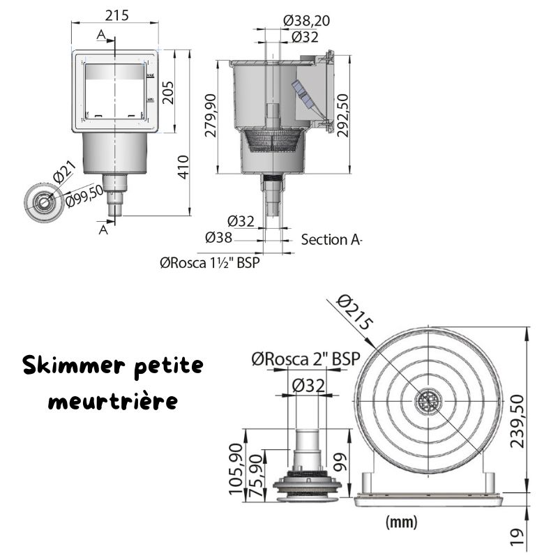 SKIMMER PETITE MEURTRIÈRE PISCINE HORS SOL BÉTON / LINER Ø32-38MM