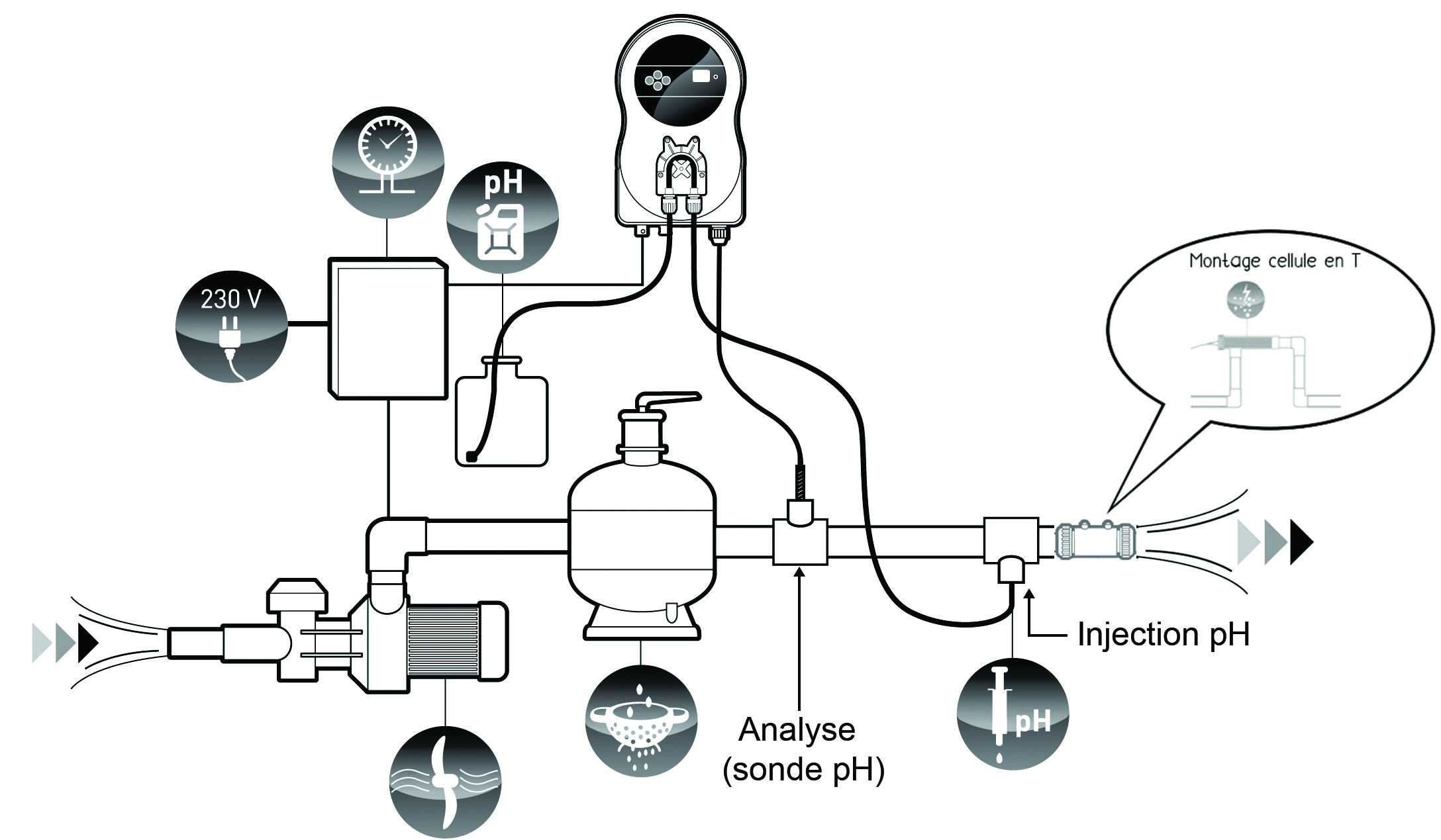 Régulateur pH intelligent, intuitif, simple et silencieux.